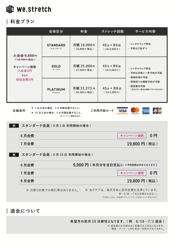 | スタンダード会員 | 月額21,800円(税込) 初月無料キャンペーン実施中! 実質4回無料! | 【マンツーマンストレッチ 45分】 or 【パーソナルトレーニング 45分】 ×月4回 | ※着替えはご用意してあります ※予約は2回までが可能 ※トレーナーの指名が可能 |